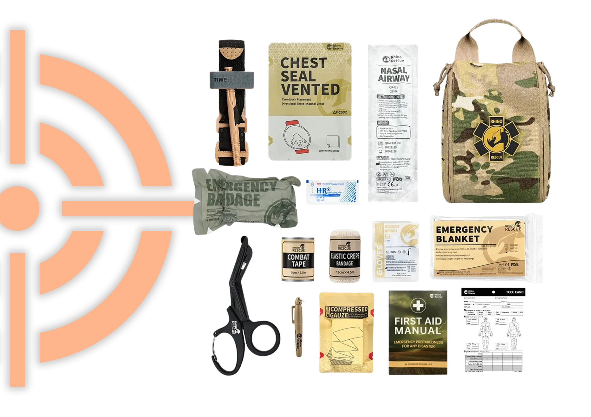 RHINO CAMOUFLAGE BAG APH KIT Complete tactical set developed for field operations. The Rhino backpack in camouflage pattern offers strategic storage capacity with organized compartments for essential equipment. The modular design allows for quick adaptation to the mission, while the resistant materials ensure durability in harsh environments. Ideal for professionals who require mobility without compromising operational functionality.